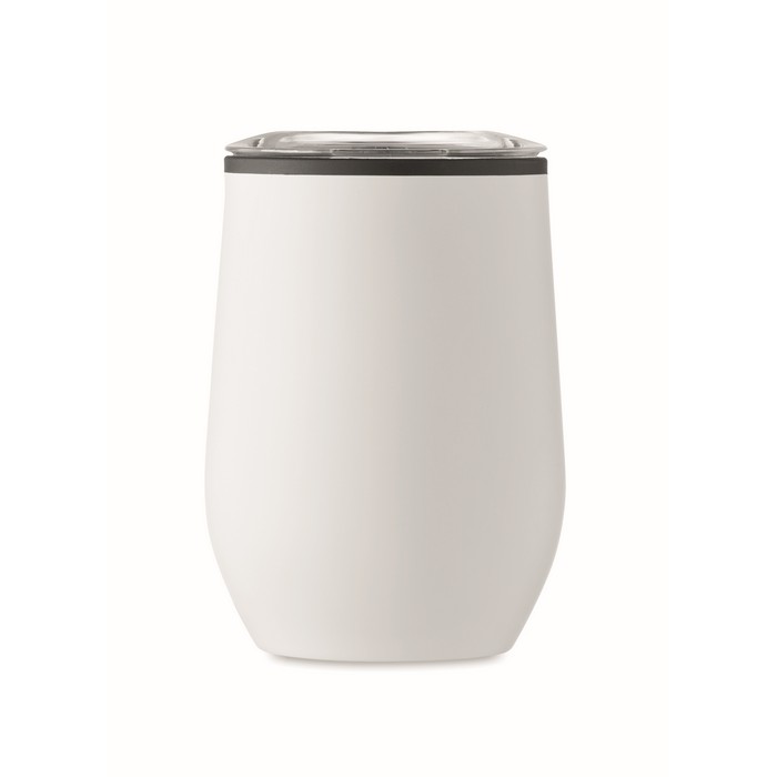 Double wall stainless steel cup with inner PP and transparent PS lid. Capacity: 350 ml.