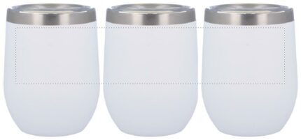 300ml powder coated double wall stainless steel 304 18/8 mug and can also be used as a wine glass. Bulk packaging.