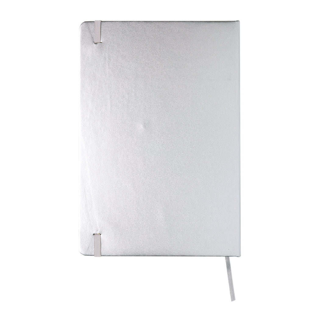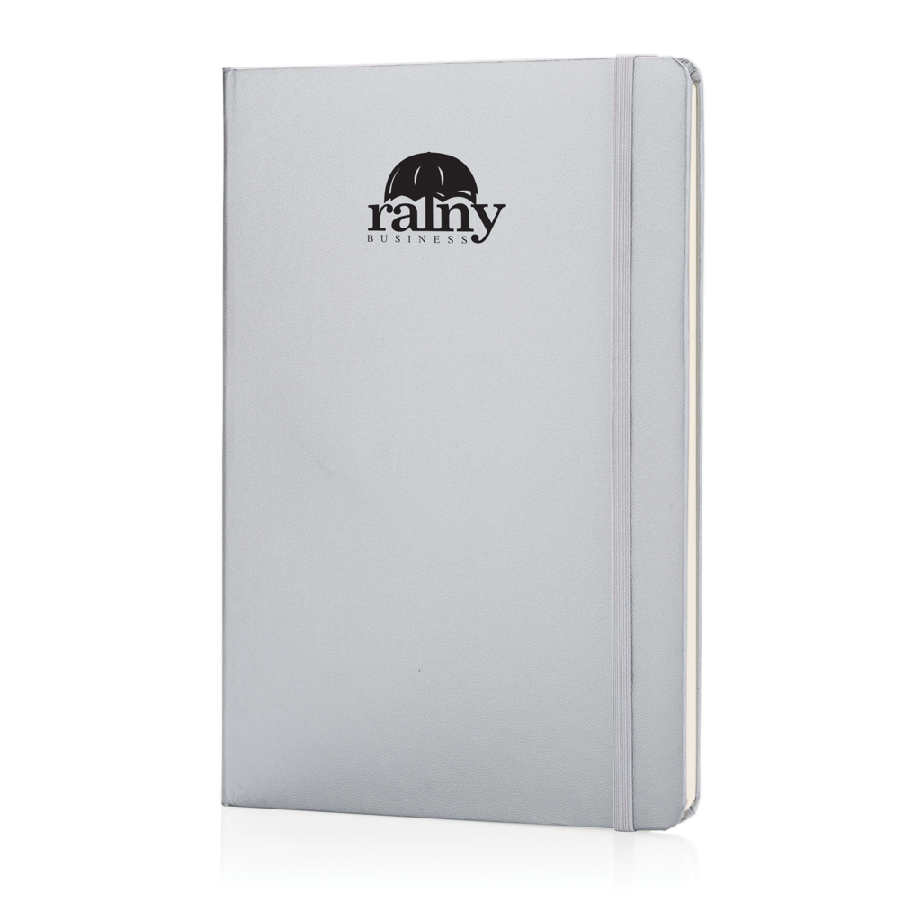Ruled A5 hardcover standard notebook with elastic closure and bookmark ribbon. 144 pages of 70g/m2 paper inside. Cream coloured pages.