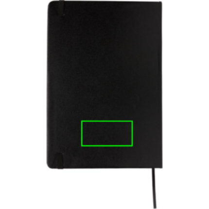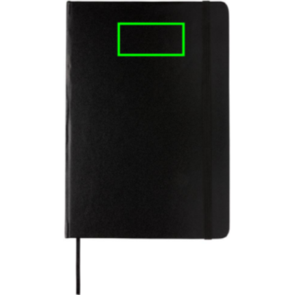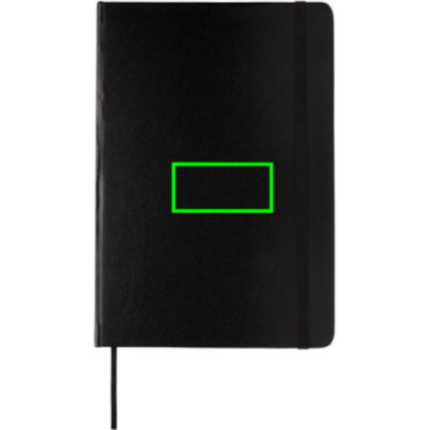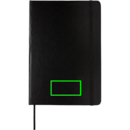 Ruled A5 hardcover standard notebook with elastic closure and bookmark ribbon. 144 pages of 70g/m2 paper inside. Cream coloured pages.