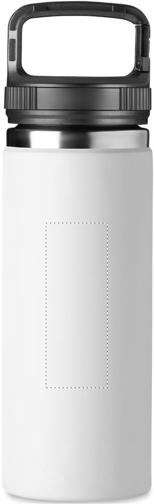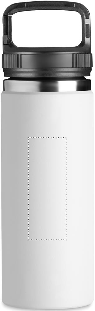 Double wall stainless steel vacuum insulated bottle with hook hanger on lid. Capacity : 500 ml.