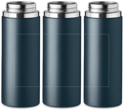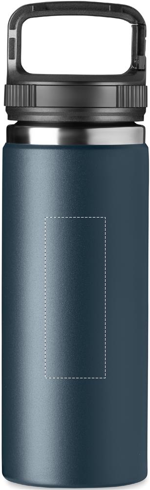Double wall stainless steel vacuum insulated bottle with hook hanger on lid. Capacity : 500 ml.