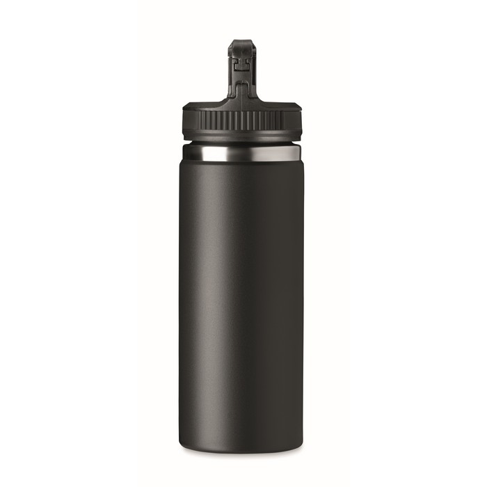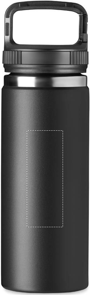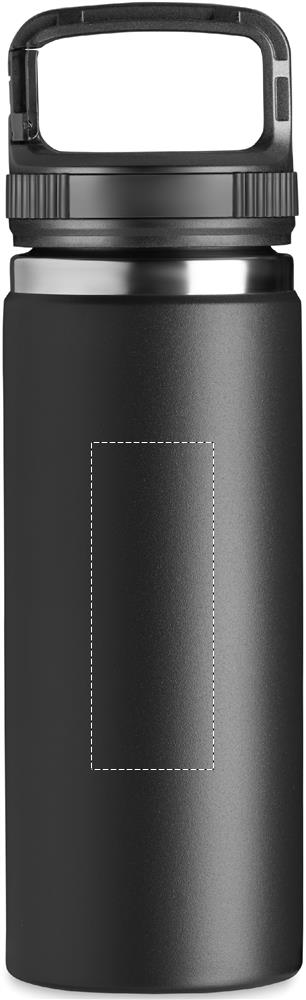 Double wall stainless steel vacuum insulated bottle with hook hanger on lid. Capacity : 500 ml.