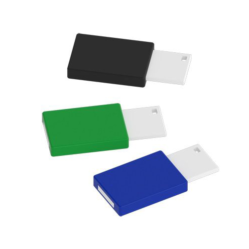 Συρόμενο USB με κουμπί. Πατώντας το ένα άκρο του συνδέσμου, βγαίνει από το σώμα: ο αποκλειστικός μηχανισμός ελατηρίου ανοίγματος και κλεισίματος προστατεύει το τσιπ μνήμης χωρίς να θυσιάζει την πρακτικότητα και την αντίσταση. Είναι εξοπλισμένο με μια υποδοχή στο τέλος για να εφαρμόσει ιμάντες και αξεσουάρ. Μπορεί να προσαρμοστεί και στις δύο πλευρές με μεταξοτυπία.