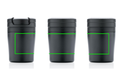 Less is more. Being 8cm high this is the perfect double wall mug for your coffee machine. PP inner. Easy twist spill proof lid. Great for Ristretto, Espresso and Lungo coffee. Hand washable only. Content 160ml. Registered design®
