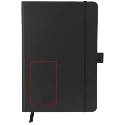 A5 bound notebook of 80 sheets of beige lined paper (70 gm2) with ribbon and elastic closure.