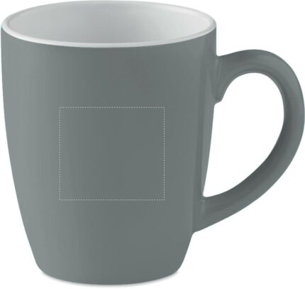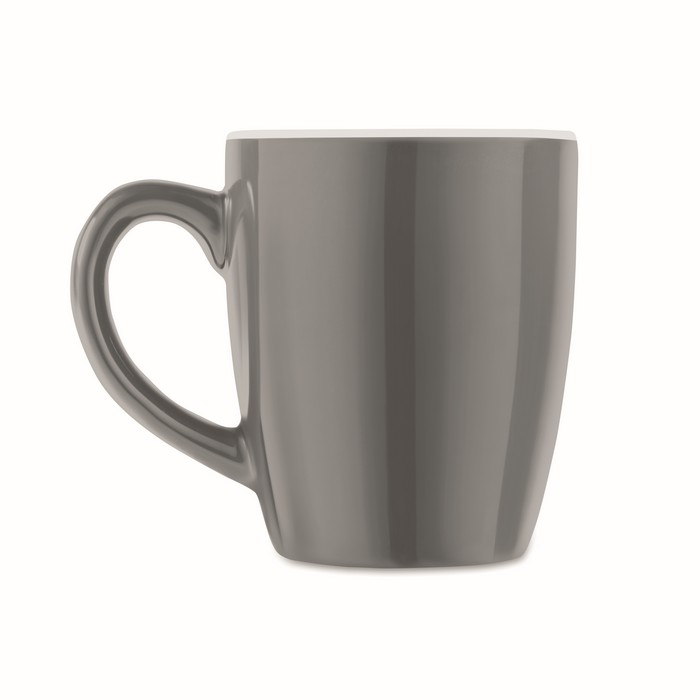 Ceramic coloured mug of 290 ml capacity. Presented in an individual corrugated carton gift box.