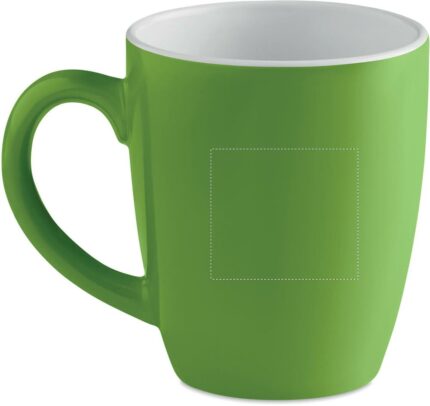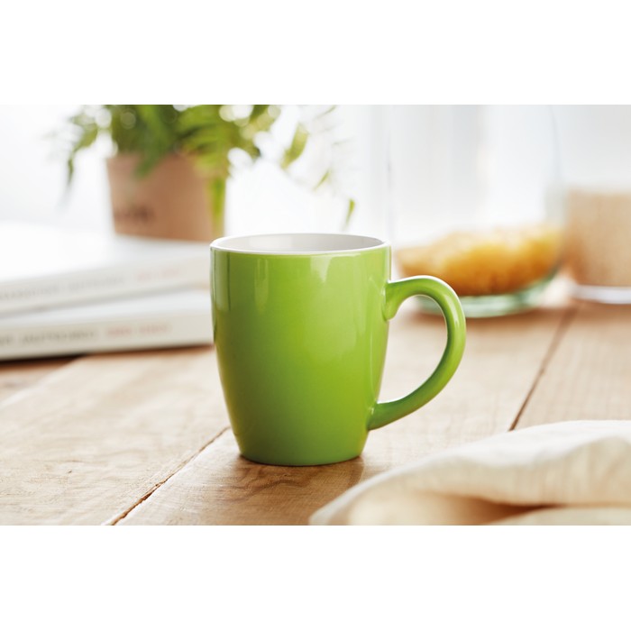 Ceramic coloured mug of 290 ml capacity. Presented in an individual corrugated carton gift box.