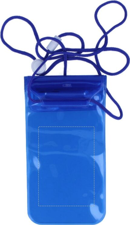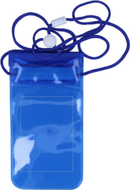 Waterproof smartphone pouch made in PVC with polyester cord. Safety buckle and stopper. The pouch has a thinner surface that allows the operation of the touch screen from the outside.