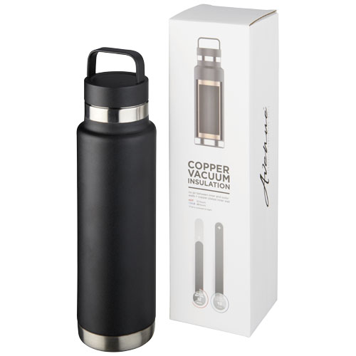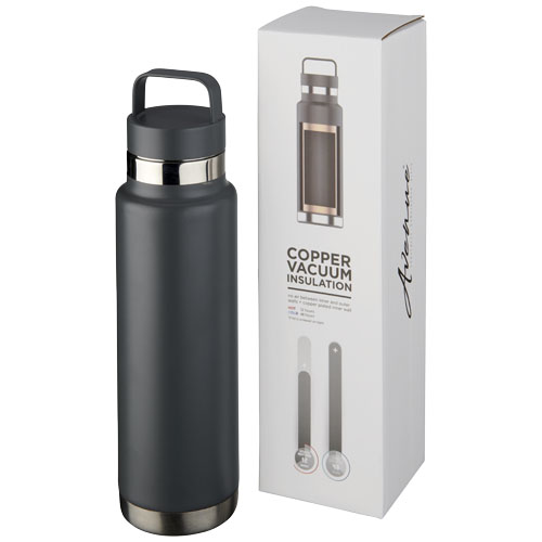 Double-walled stainless steel vacuum construction with copper insulation, which allows beverages to stay cold for 48 hours or hot for at least 12 hours. The construction also prevents condensation on the outside of the bottle. Features screw-on lid. On-trend, durable powder coating. Volume capacity is 600ml. Presented in an Avenue gift box.