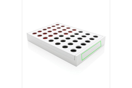 Enjoy a fun game night together with your friends! This strategy game is both fun and a good mental exercise. The aim is to get four pieces in a row. The game board is made of MDF and the 42 game pieces of schima superba wood and measures 24×16.5×3.5 cm. Presented in a full colour gift box.