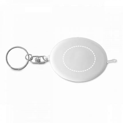 Keyring with 1’5 metre tape measure with brake. 60 x 48 x 15 mm