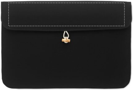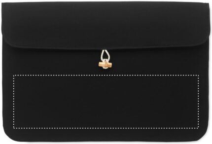 15 inch padded laptop pouch in 220 gr/m² cotton. Inner lining 120 gr/m². Bamboo button closure.