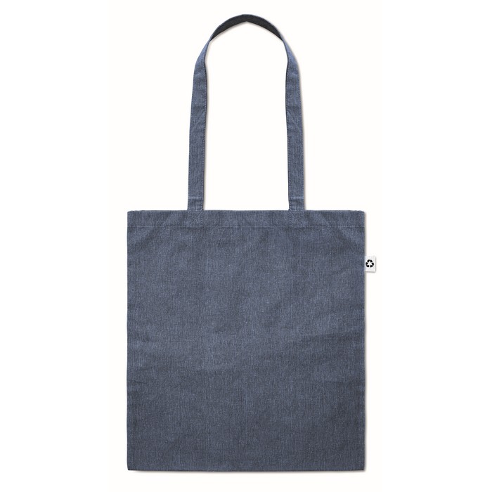 2 tone recycled cotton and recycled polyester shopping bag with long handles. Approx. 140 gr/m². This item can shrink after printing.