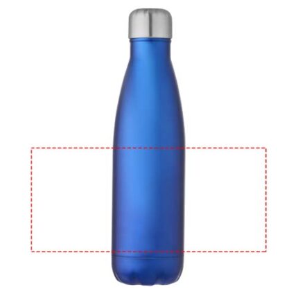 Vacuum insulated stainless steel bottle with an iconic design. The insulated 18/8 stainless steel keeps drinks hot or cold for several hours. Tested and approved under German Food Safe Legislation (LFGB), and tested for phthalates content according to REACH regulations. Featuring a base that fits in most cup holders, this sleek looking water bottle is a perfect promotional item. Volume capacity is 500 ml. Presented in a recycled cardboard gift box.