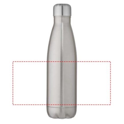 Vacuum insulated stainless steel bottle with an iconic design. The insulated 18/8 stainless steel keeps drinks hot or cold for several hours. Tested and approved under German Food Safe Legislation (LFGB), and tested for phthalates content according to REACH regulations. Featuring a base that fits in most cup holders, this sleek looking water bottle is a perfect promotional item. Volume capacity is 500 ml. Presented in a recycled cardboard gift box.