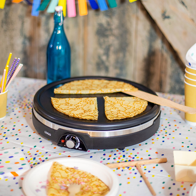 Με εκτύπωση: Ένα μαύρο ηλεκτρικό Crepe maker XXL.