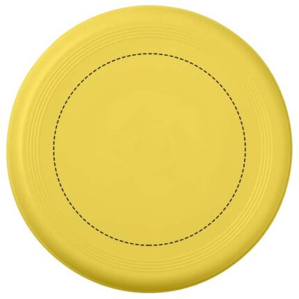 Solid frisbee made from post-consumer recycled plastic. The frisbee has a speckled finish due to the nature of the recycled material. EN71 compliant.