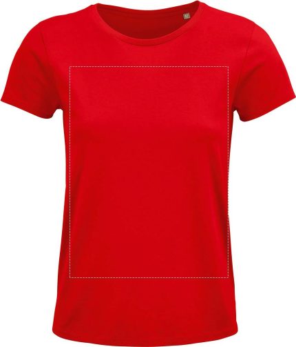 SOL’S CRUSADER Women’s T-shirt in organic cotton with natural finish for a softer and more comfortable feel, ribbed cotton collar, taped neck seam, fitted cut with sewn side seam. No-Label. Quality:150g/m², single jersey 150, 100% organically grown cotton. OEKO-TEX®. Only sold with print