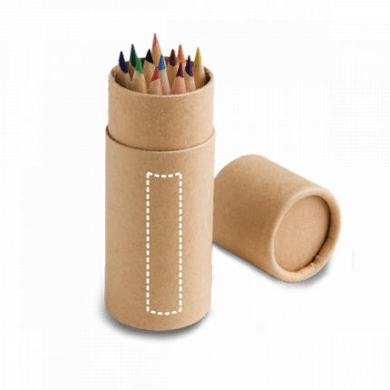 Cylindrical Kraft paper box with 12 colouring pencils. ø35 x 97 mm