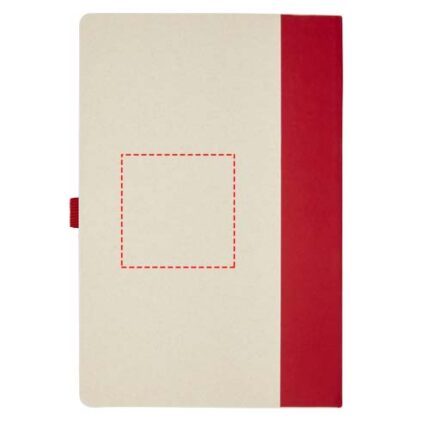A5 size reference notebook and ballpoint pen set. The notebook features 80 lined sheets (80 g/m²) made from recycled milk cartons (up to 70%), a coloured paper spinal, and a pen loop. In the pen loop, there is a click-action ballpoint pen in matching colour of the notebook. The pen has a barrel made of the same recycled milk carton material and the button, clip, and tip is made of coloured PLA plastic. The pen features a black refill inside. Used milk cartons are collected, sorted, processed, and turned into paper, truly turning waste into something useful.