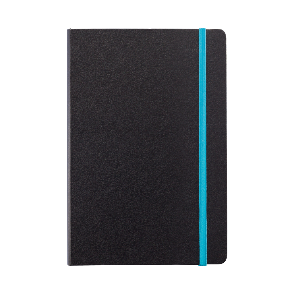Fashionable hardcover notebook with 160 pages of 80g/m2 paper. The side of the pages are matching with the elastic band.