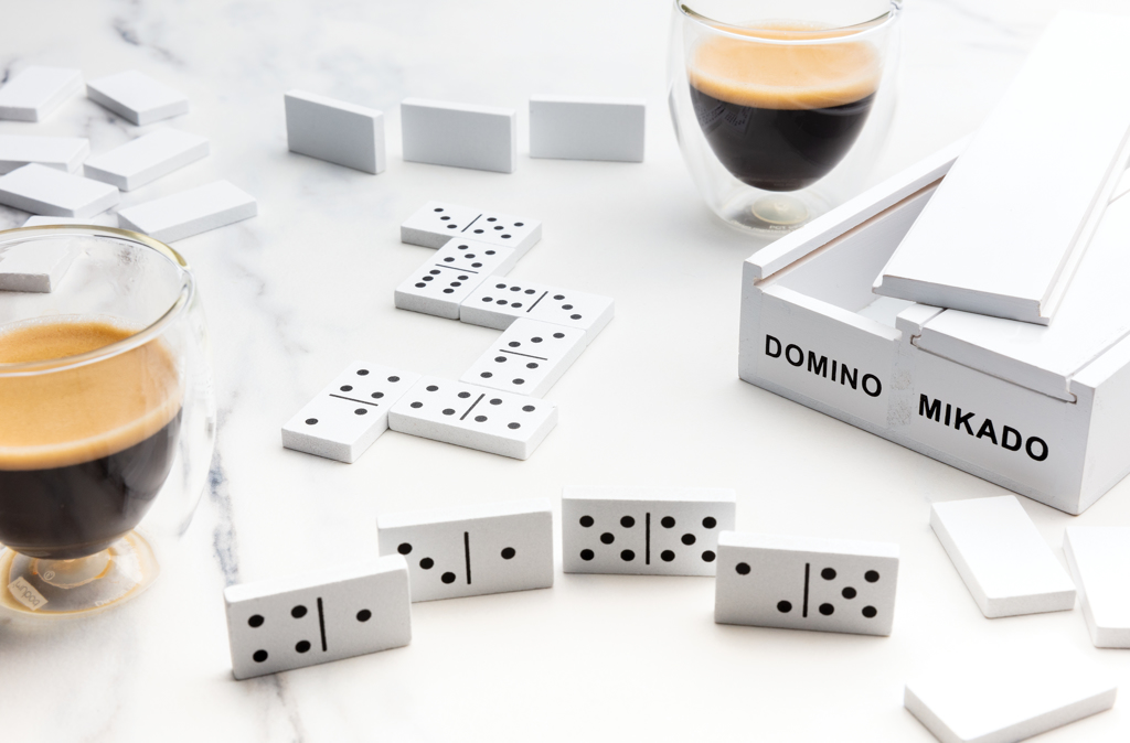 Set of two vintage games collected in an MDF box. The box contains Mikado and Domino. Create fun moments with these classic games. The Mikado game contains 41 sticks and the Domino game 28 blocks in a white lid box. Comes in full colour box.