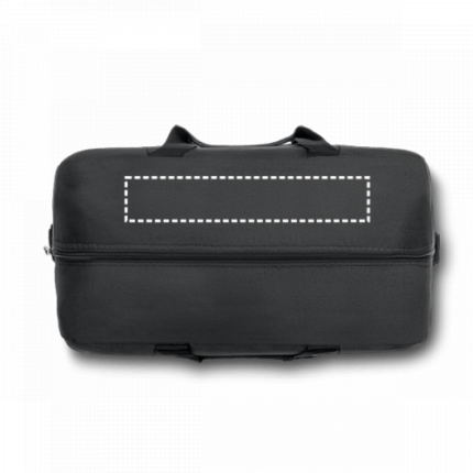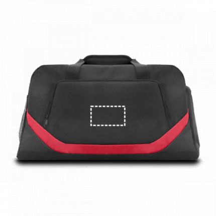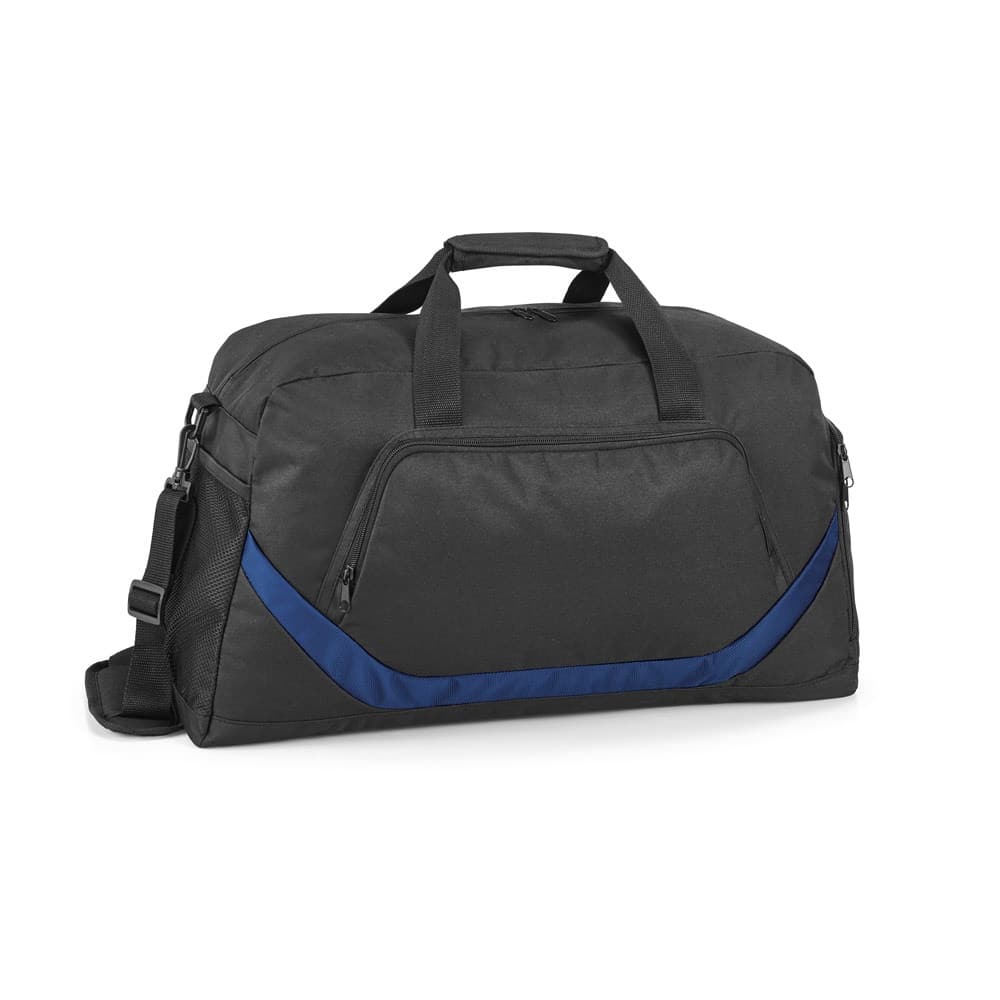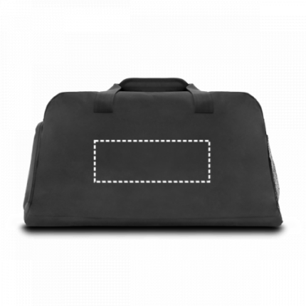 300D and 1680D sports bag with lined interior and bottom with semi-rigid board. The bag has 1 zippered front pocket and 2 side pockets: 1 mesh pocket and another zippered shoe pocket. The shoulder strap is adjustable and has padded reinforcement. Capacity up to 35 L. 550 x 300 x 250 mm