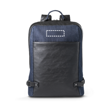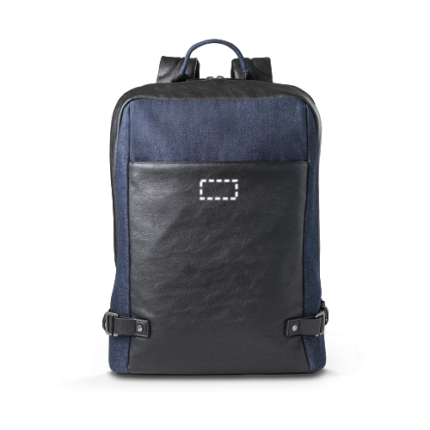 Backpack with a mix of contemporary materials, with a young and irreverent touch that results from the contrast of denim with the elegance of black and irregular texture from PU. Its high quality zipper, with rubber finishing, along with the top in PU, gives the backpack some water resistance. The PU bottom allows it to be easily cleaned. Interior compartment with elegant design and details in PU, contains a padded pocket for computer up to 15’6” and two pockets with zippers. One of the pockets is made of elastic material, giving it a greater storage possibility. The adjustable side strips, aesthetics, can serve as support for placing elements, such as hanging a jacket or as support for a headset cord. Padded straps and handle with hand reinforcement for comfort, a rear anti-theft pocket and a hidden front pocket. Also includes a trolley strap. Capacity up to 15 L. Supplied in a non-woven bag. Product includes Quality Test Report. Backpack: 320 x 430 x 125 mm | Non-woven bag: 500 x 550 x 130 mm