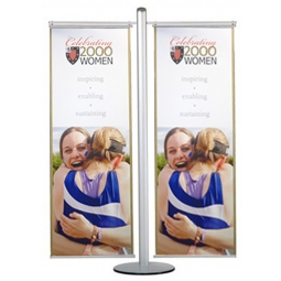 Double Display Βanners. Διπλά διαφημιστικά πανό για διαφημιστική χρήση. Οι μέγιστες διαστάσεις εκτύπωσης πάνω στα banners είναι 60*175cm. Είναι ένα αντικείμενο που θα σας βοηθήσει στην καλύτερη εταιρική σας και διαφημιστική σας προβολή. Μπορεί να τοποθετηθεί σε εταιρίες, ξενοδοχεία, εκθεσιακούς χώρους, συνέδρια και event. Σας δίνουμε την δυνατότητα εκτύπωσης του λογότυπού σας ή όποιου άλλου εικαστικού και μηνύματος εσείς επιθυμείτε. Έχοντας την δυνατότητα διπλής διαφημιστικής προβολής κάνετε καλύτερη και φυσικά μεγαλύτερη διαφήμιση σε ότι εσείς επιθυμείτε.