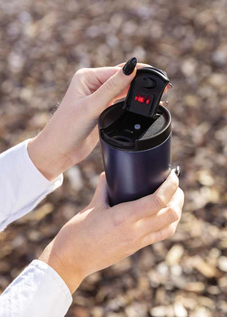 This double wall vacuum leakproof lock mug is the perfect size for your beverage. It’s leak proof sealing flip lid is designed for easy open/close and on-the-go use. Vacuum insulation keeps beverages hot for up to 5 hours and cold for up to 15 hours. Capacity 300ml. BPA free.