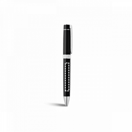 Set with rollerball and ball pen with twist mechanism, both in metal and with a clip. Supplied in a cushioned gift box. Black ink. ø12 x 132 mm | Case: 170 x 70 x 30 mm