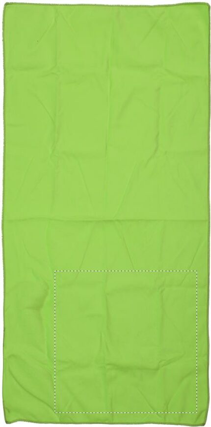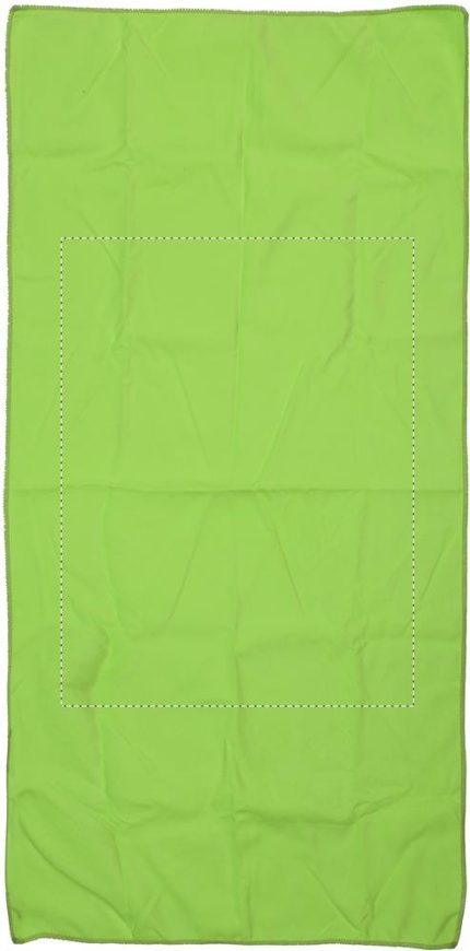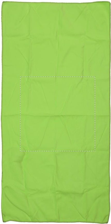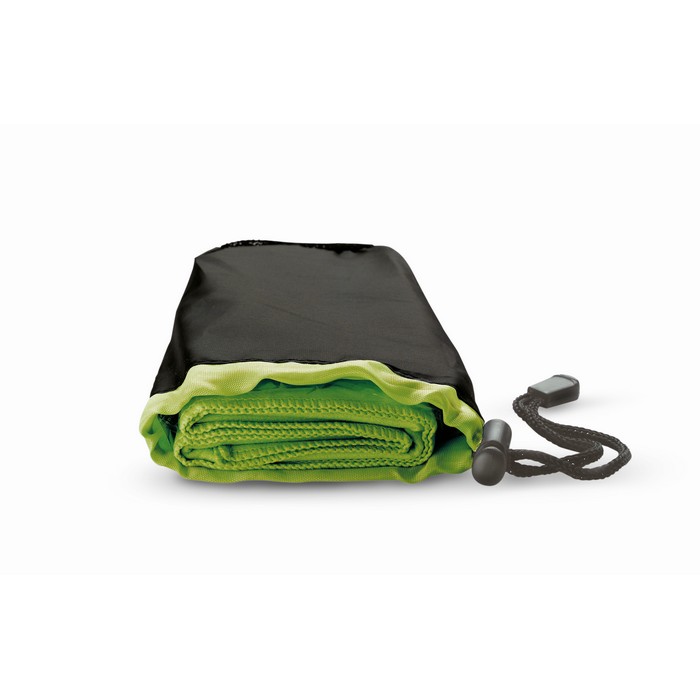 Sports towel presented in nylon pouch with adjustable closing. Towel: 70% polyester, 30% polyamide.