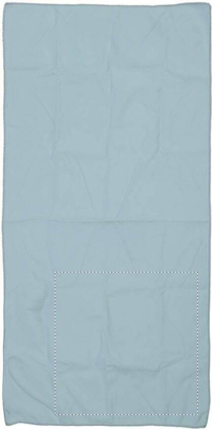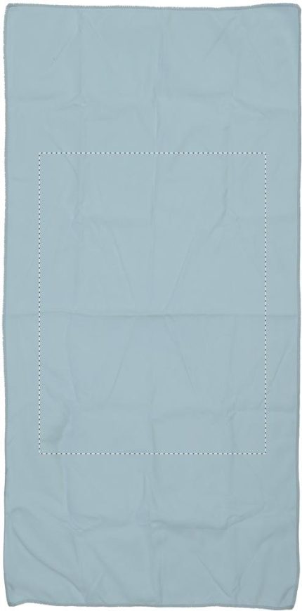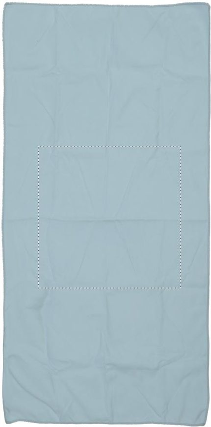 Sports towel presented in nylon pouch with adjustable closing. Towel: 70% polyester, 30% polyamide.