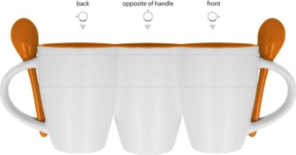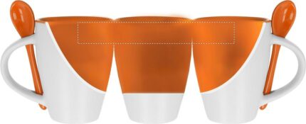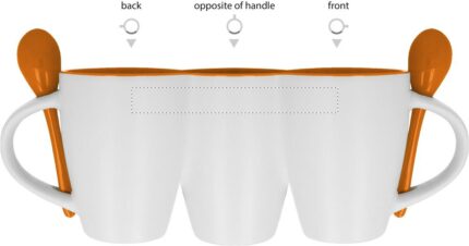 Bicolour ceramic coffee mug of 250 ml capacity with colour matching spoon. Individual box 11,5×10,5×9,3cm.