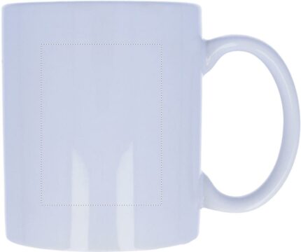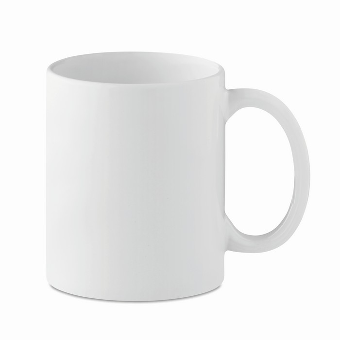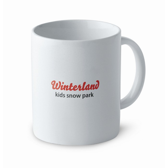 Classic cylindrical ceramic mug of 300 ml mug. Individual packaging in corrugated carton gift box. For full colour process printing, please contact us for pricing.