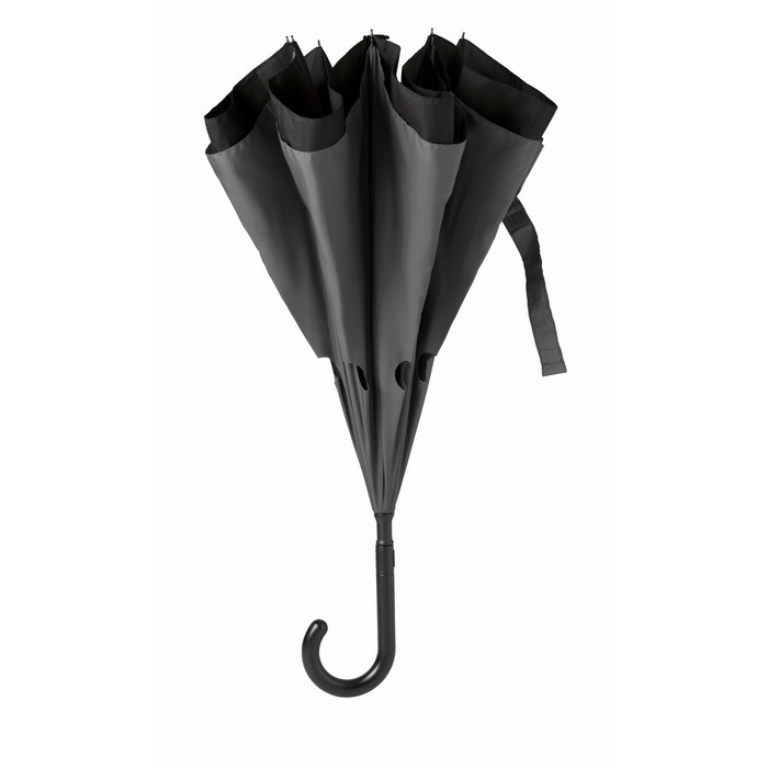 23 inch reversible umbrella, double layer, full fiberglass ribs and frame,190T pongee, manual open auto closure.