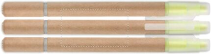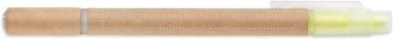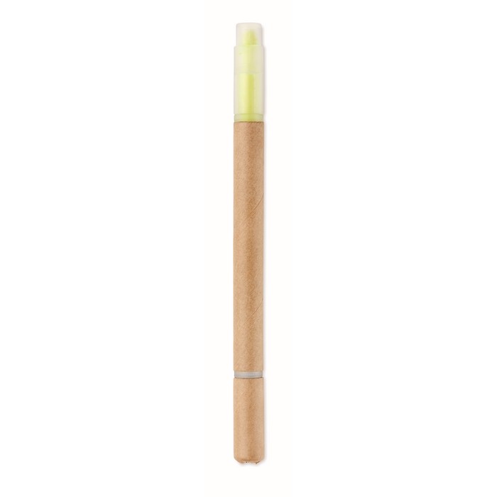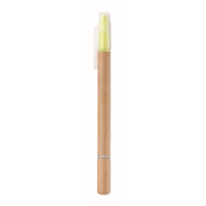 2 in 1 recycled carton barrel ball pen and yellow highlighter. Blue ink.