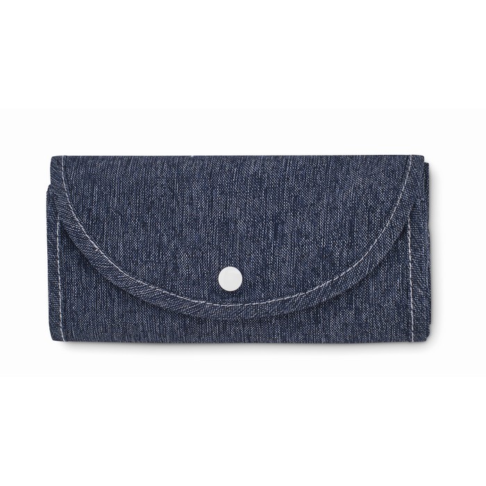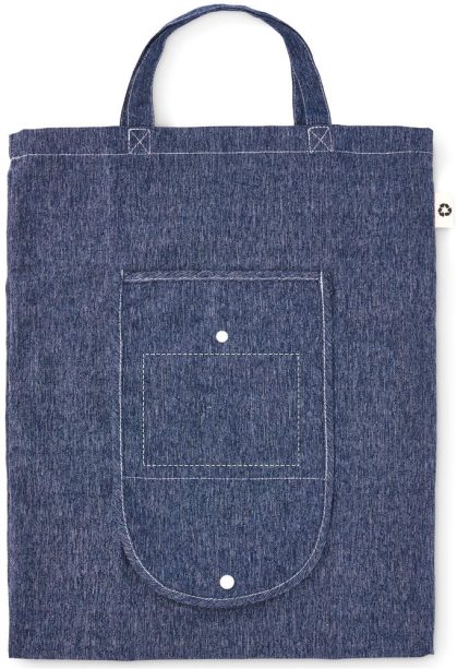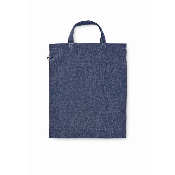 Foldable 2 tone recycled cotton and recycled polyester shopping bag with long handles. Approx. 140 gr/m². This item can shrink after printing.