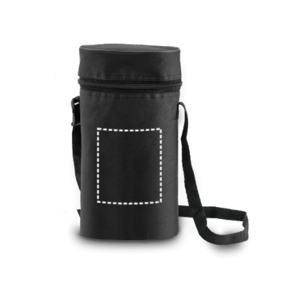 Set with thermal bottle and stainless steel mugs. The set includes 2 mugs with volume-capacity of 200 mL, double walled bottle with volume-capacity of 500 mL and a 600D pouch with adjustable strap. Pouch: 155 x 250 x 90 mm