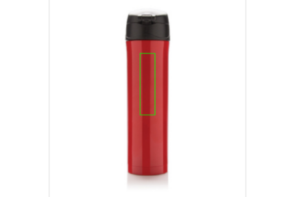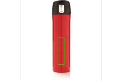 Double wall stainless steel vacuum flask that keeps your drink warm for up to 5 hours or cool up to 15 hours. The lid is lockable and therefore avoids any risk of leaking or spilling. The lid is easy to keep clean for optimal hygiene and can even be washed in the dishwasher. The unique design of the flask allows you to drink conveniently and safely with one hand directly from the flask. The size of the flask is suitable to place in any car drink holder. Capacity: 450 ml.