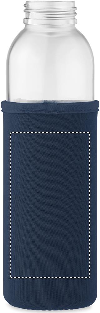 Recycled glass bottle with neoprene pouch and PP lid with silicone hanger. Leak free. Capacity: 500 ml.