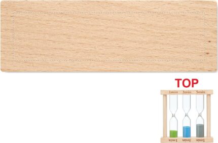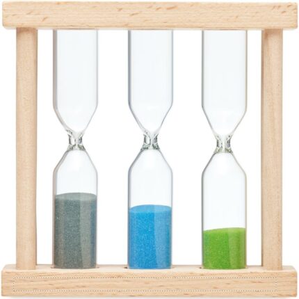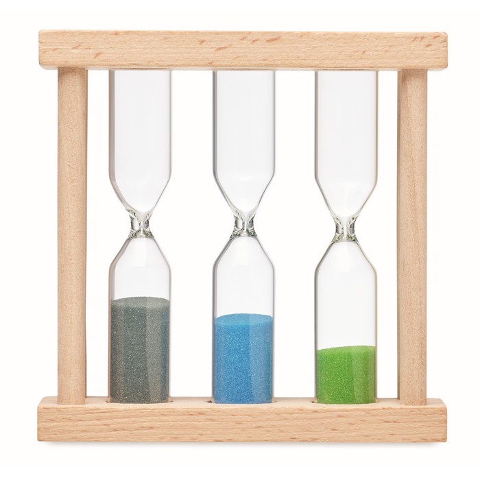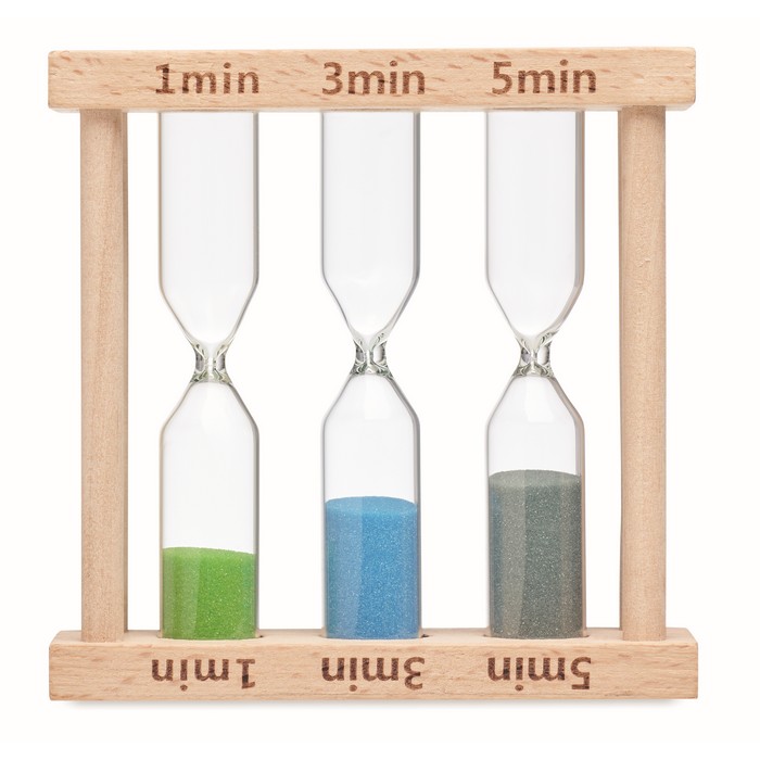 Wooden triple sand timer set with 3 different timers (approx. 1, 3 and 5 minutes).