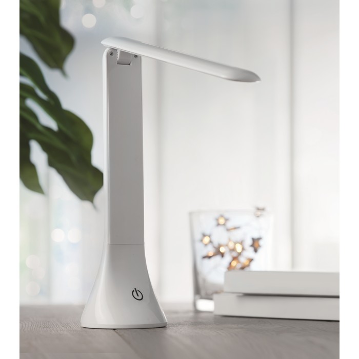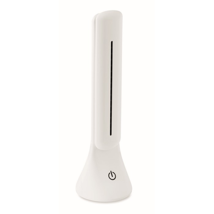 COB foldable table light with touch on off button and with 3 different light settings. Can be operated with USB cable and 3 AA batteries which are not included.