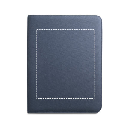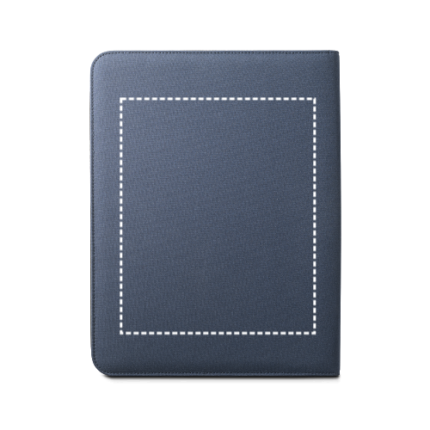 300 D PET (100% rPET) A4 folder with zipper. 210D PET (100% rPET) lining with multiple pockets, smartphone compartment up to 6’5”, pen holder (pen not included) and a notepad with 20 white lined sheets. Supplied in a non-woven pouch. 250 x 340 x 40 mm