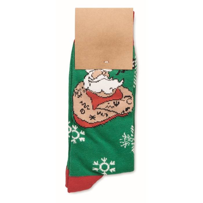 Το ζευγάρι καλτσών JOYFUL L συνδυάζει την άνεση και την ποιότητα, καθώς είναι κατασκευασμένο από 75% βαμβάκι, 23% ανακυκλωμένο RPET πολυεστέρα και 2% spandex, προσφέροντας άνεση και ελαστικότητα. Παρουσιάζονται σε ένα κομψό κουτί δώρου, καθιστώντας τις ιδανικές για δώρο ή για προσωπική χρήση. Διαθέσιμες σε μέγεθος L (43-46), αυτές οι εορταστικές κάλτσες είναι η τέλεια προσθήκη στην γκαρνταρόμπα σας για τις γιορτές,