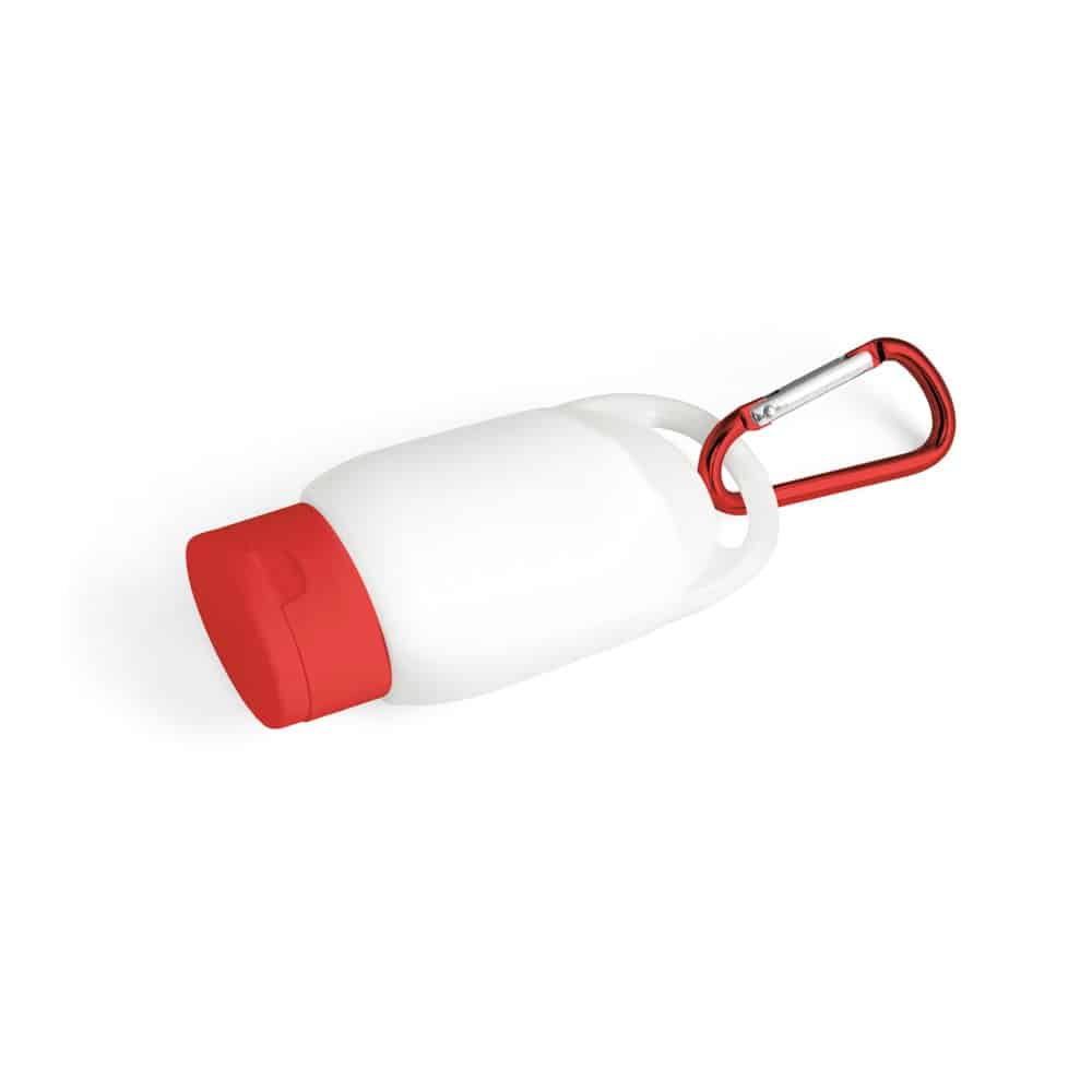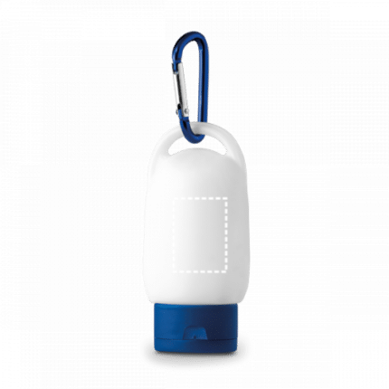 SPF30 sunscreen with a capacity of 30 mL. The sunscreen package has a metal carabiner. Legal information available at: PT, EN, ES, FR, IT, DE, PL, CZ, SK, RO, RS, HR, NL, HU, DK, NO, SV, BG. 93 x 50 x 23 mm