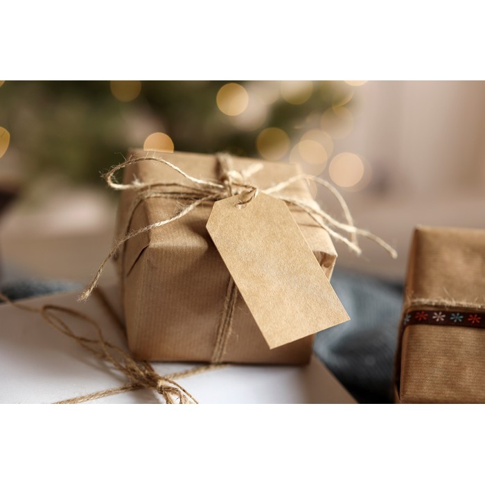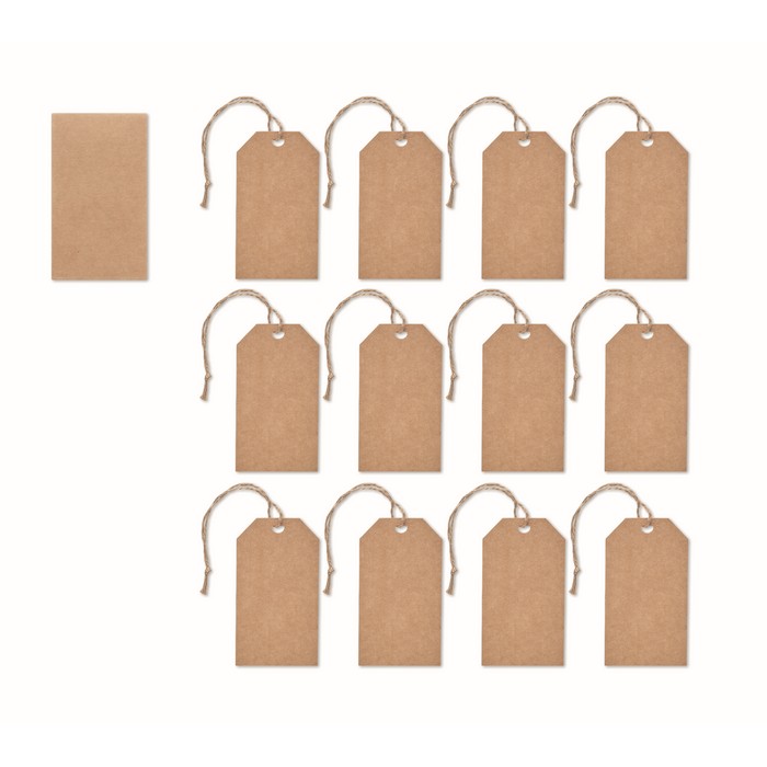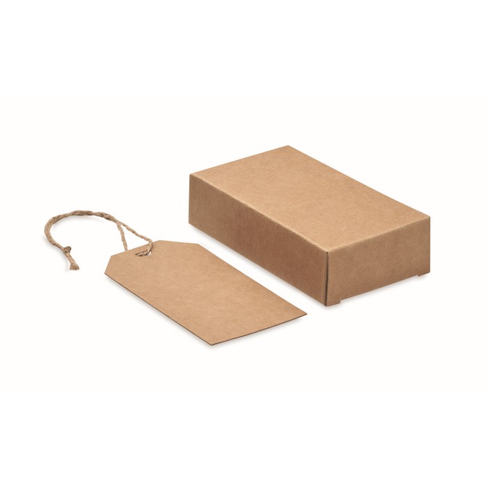 Set of 12 kraft paper (350 gr/m² ) gift tags with jute cord in a kraft gift box.
