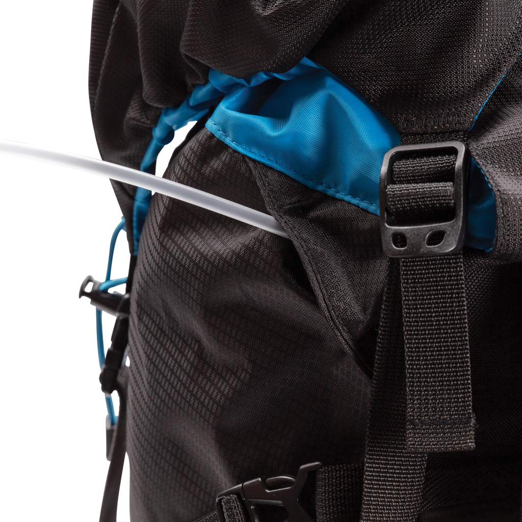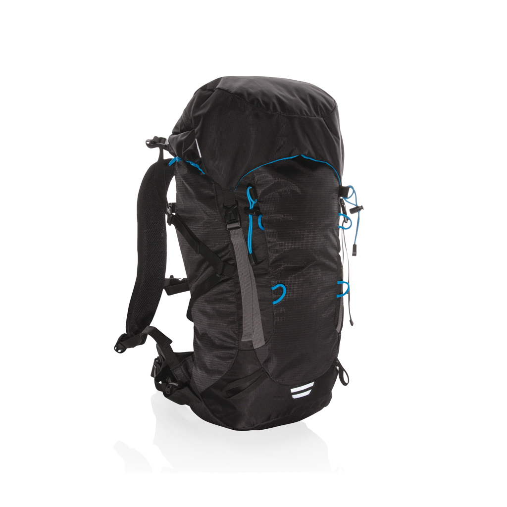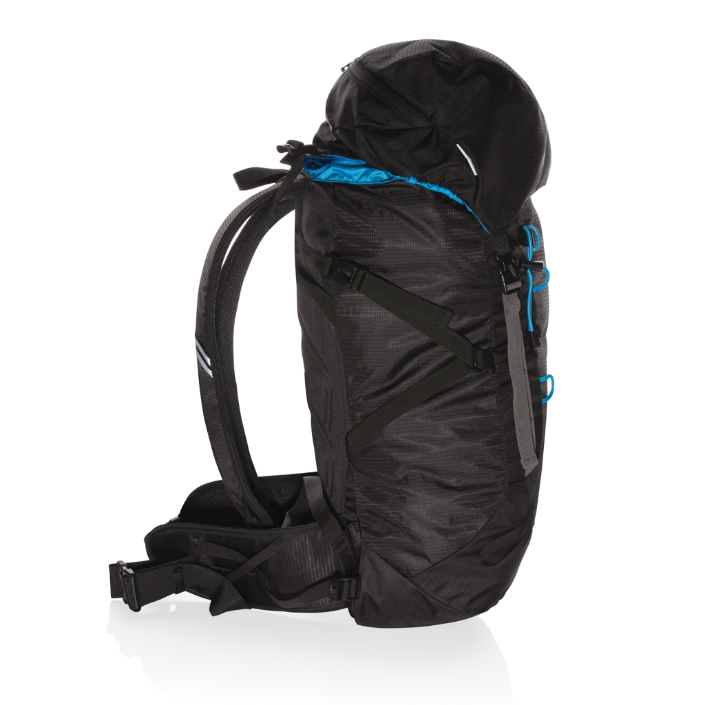 Carry your essentials for casual travel inside this rugged hiking backpack. The hiking backpack is made from durable polyester fabric and features a sporty design. The backpack includes a sleeve that can be used to hold your hydration reservoir or laptop, trekking pole loops, a top stash pocket and an integrated rain cover. Contrast details add a touch of colour and a touch of sporty style to the overall design. PVC free.