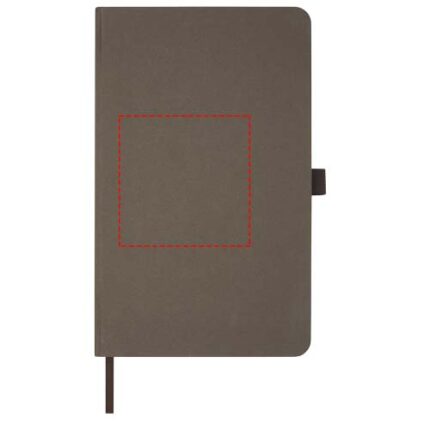 Lightweight hard cover notebook for everyday notetaking with a cover made from responsible sourced materials. The brown cover contains residue of coffee, the green cover includes residue of olives, and the white from corn. Features 80 sheets (70 g/m²) recycled white lined paper.